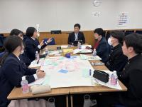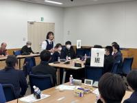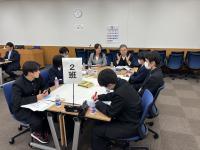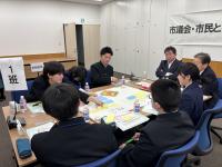 ワールドカフェ方式で行われ、「①十和田市のイチ推し・残念なところ」と「②推したくなる十和田市になるためには」という議題について、議員の方を交えてそれぞれグループを変えて話し合いました。最初は緊張した様子でしたが、次第に打ち解けていき、高校生の目線で十和田市について感じていることを議員の方々と共有していました。最後には議場や議長室の見学もさせていただきました。