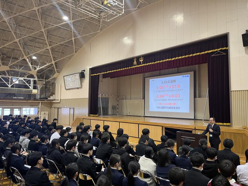 令和8年2月12日、河合塾北海道東北営業部東北営業チーム調査役 高橋 章 先生を講師として、「進路目標達成のための主体的な取り組み」をテーマに高校2学年生徒を対象に進路講演会を実施しました。