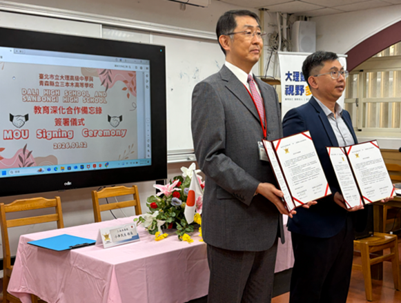 青森県立三本木高等学校と台湾臺北市立大理高級中學は、2026年1月12日、台湾台臺市立大理高級中学校において教育提携協定書に署名をし、 MOU協定 を締結しました。両校は令和3年度より青森県教育委員会と台北市政府教育局が締結した教育交流協力に関する了解覚書に基づき、これまでオンライン交流をはじめ、相互の学校訪問などを行い学校交流を続けてきました。この度のMOU協定締結により、より一層両校の友好関係が深まり、生徒の外国語コミュニケーション能力の向上と、広い視野と国際感覚の育成を目的とした交流活動が進められます。両国の持つ魅力をあらためて認識しながら、国際的に活躍できる人材の育成に向けた取り組みを推進していきます。