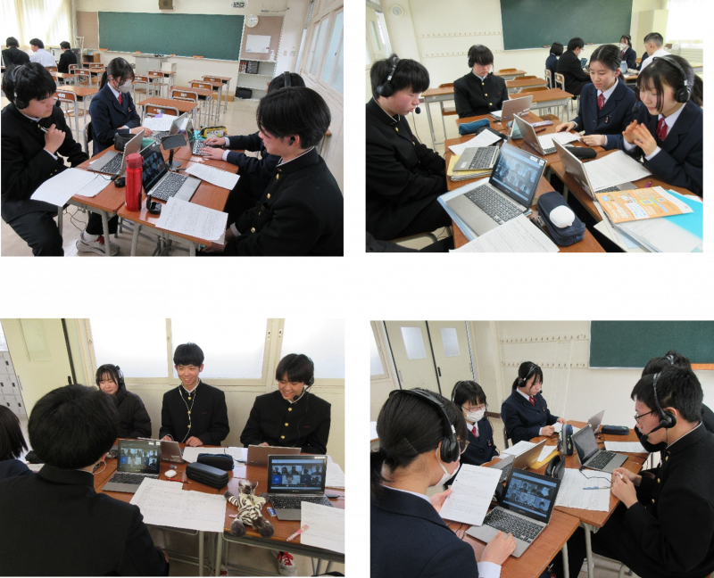 第3回の交流のテーマは「This Year’s Goals」です。2027年の目標について、日本・台湾の双方が英語で発表したり、質問したりしていました。台湾の高校生の中には、日本に以前来たことがあり、日本語の勉強をがんばりたい、また自分の将来の夢のために大学受験にむけて勉強をがんばりたいという発表がありました。海外でも自分たちと同じようにいろいろな目標を掲げて努力をしている仲間がいるということを実感し、交流した1年生の生徒みなさんも新年度へ向けてさらなる意欲をかき立てられたようでした。