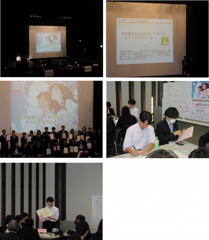 2025年度「SDGs QUEST みらい甲子園青森県大会」において、高校2年グローバルサイエンスコース生徒2名が審査の結果ファイナリストに選出され、令和8年3月1日(日)青森市文化観光交流施設 ねぶたの家 ワ・ラッセ で行われたファイナルセレモニーに出場しました。
